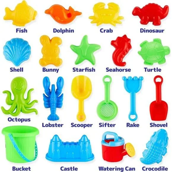 🧿BUCKET - This includes 1 bucket with an easy-to-carry handle, which is useful and convenient to use.🧿MOLDS - It also includes animal molds, such as starfish, crocodile, turtle, bunny, dinosaur, octopus, seahorse, fish, shellfish, lobster, and castle wall mold. Colors may vary.🧿OTHER INCLUSIONS - Other useful and fun inclusions are sand sifter, watering can, rake, and 2 shovels with sifter shovel for hours of fun at the beach!🧿DRAWSTRING MESH BAG - It also comes with a reusable drawstring mesh bag for easy storage and travel.🧿PERFECT BEACH SET - This is indeed a perfect beach set for your upcoming beach or pool party!