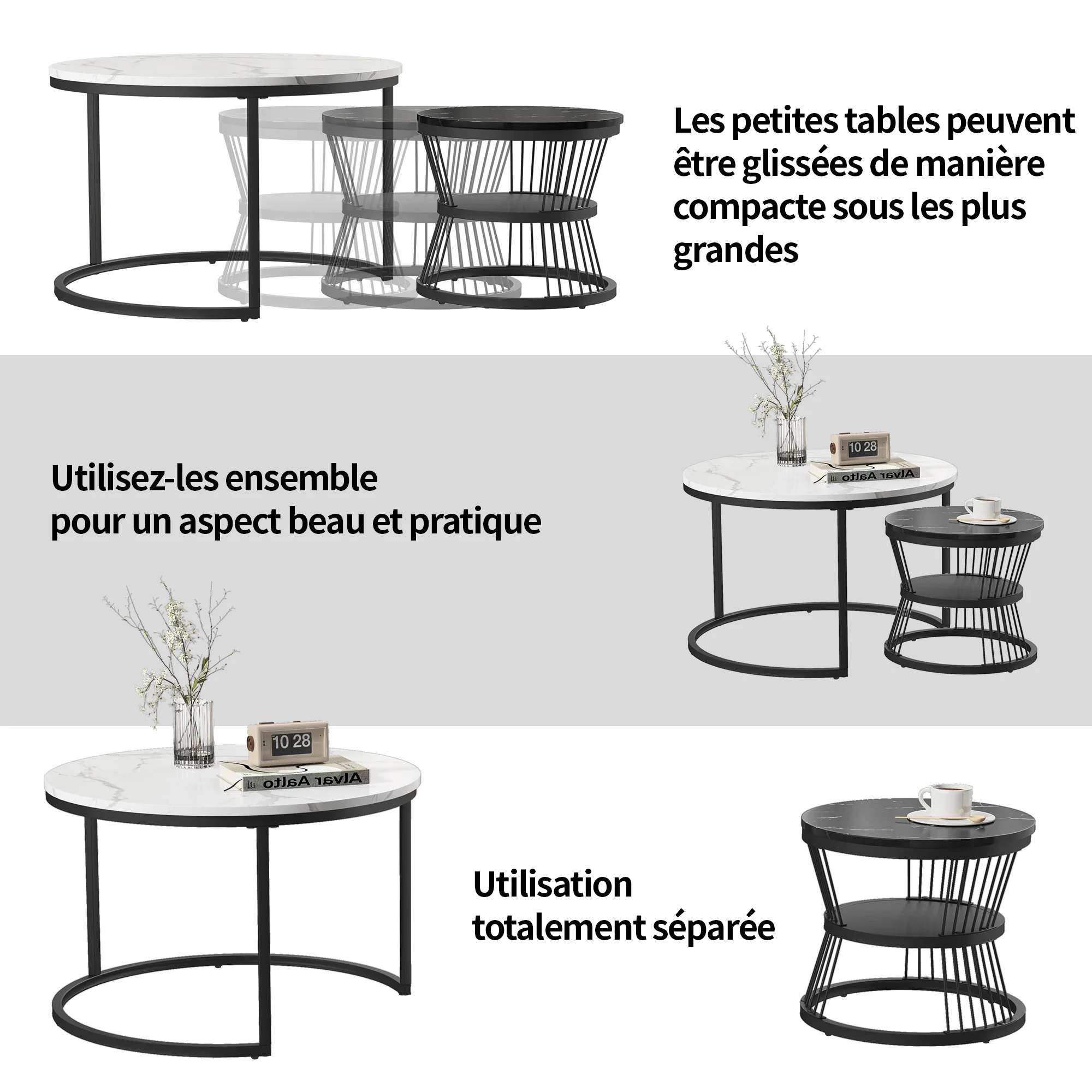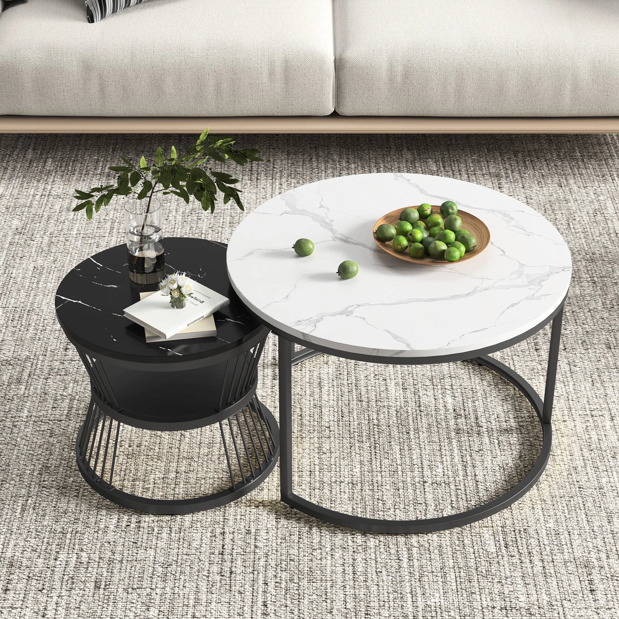 Anajqaqia Set of 2 Round Coffee Tables, Set Tables for Living Room, Stackable Sofa Table, Living Room Table, Black and White