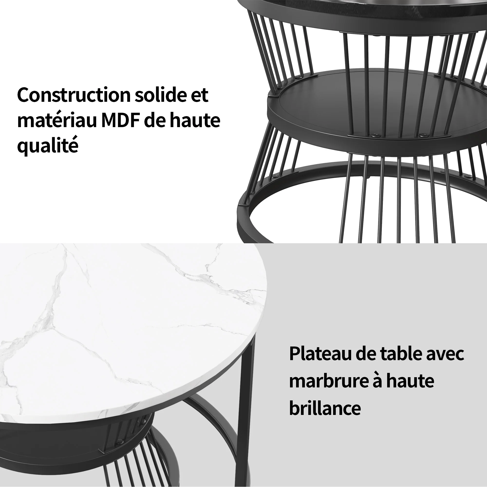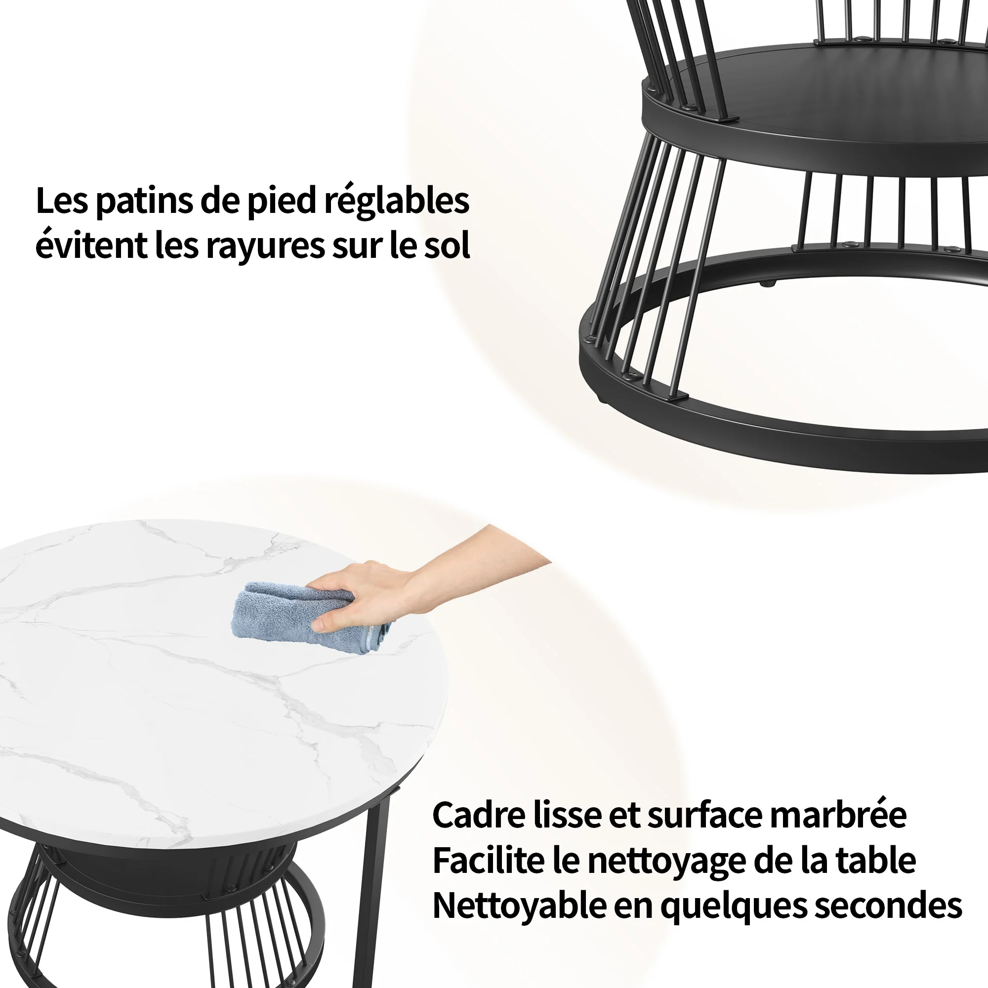 EASY TO ASSEMBLE: This round white and black coffee table is a breeze to assemble thanks to its simple structure and the illustrated instructions (not guaranteed in English). If you have any questions, our customer service team will be happy to help you.