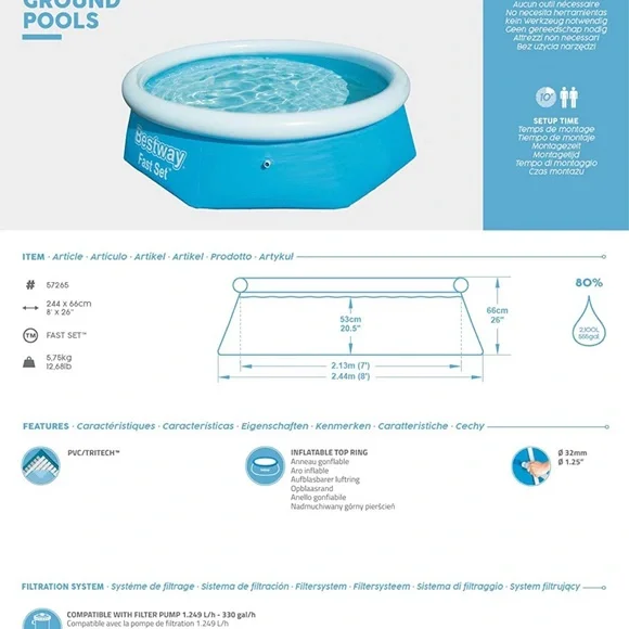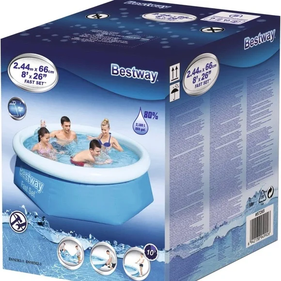 Fast set pools are easy to set up (tool free) and maintain so you can splash around and cool off on hot summer days with easeStrong and Durable Build: Pool is made from heavy duty three ply TriTech material for increased rigidity and strengthEasy Inflation (10 Minute Setup): Simply inflate the upper ring and the pool will rise as it's filled with water to create a stable structure