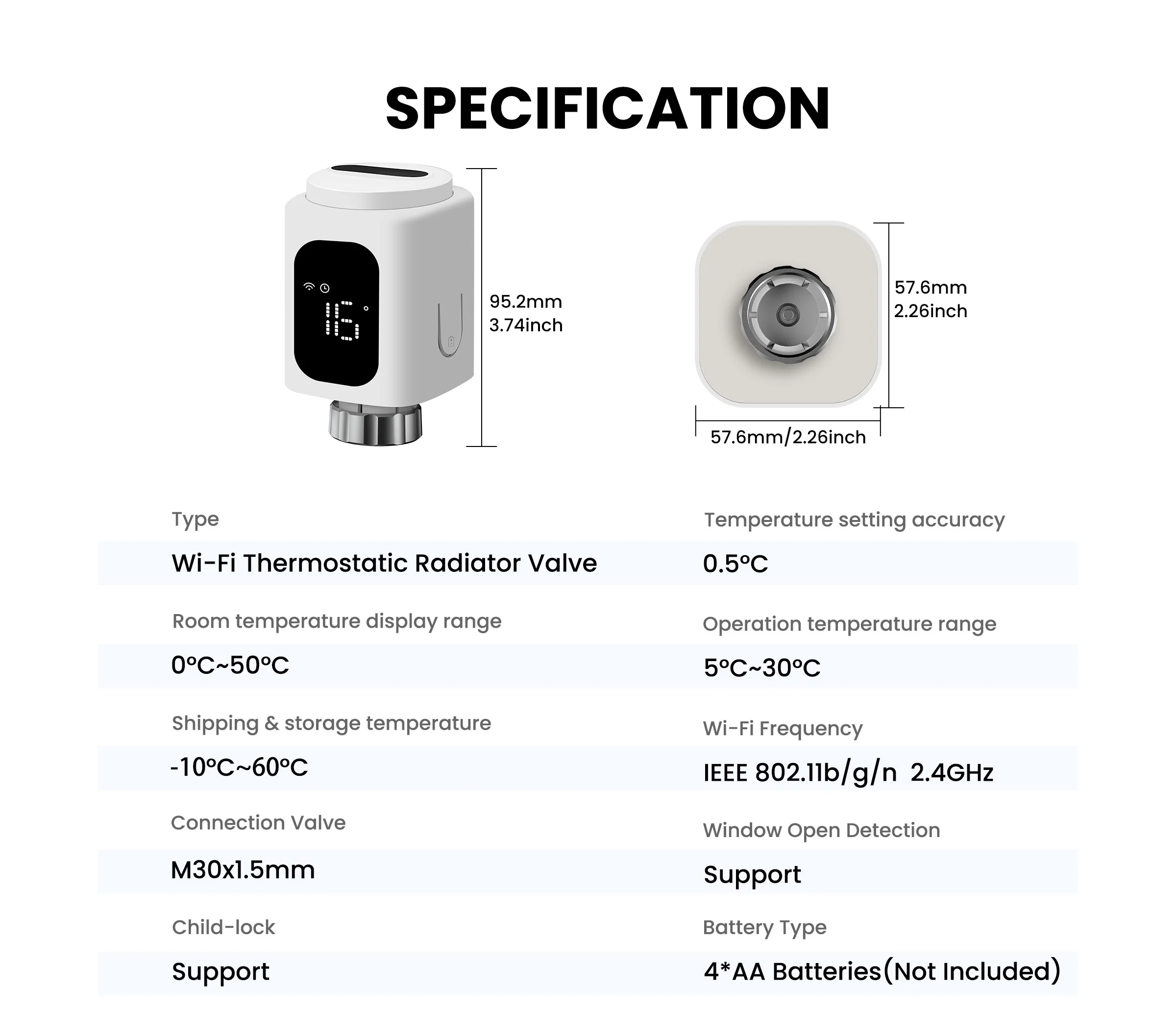 Type: Wi-Fi Thermostatic Radiator Valve