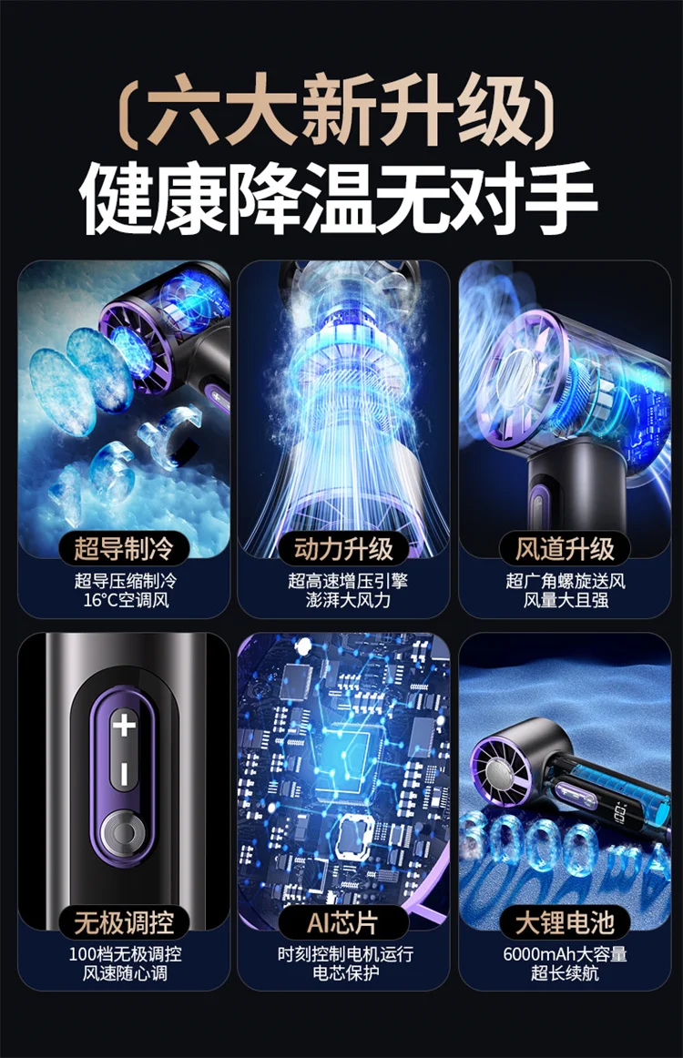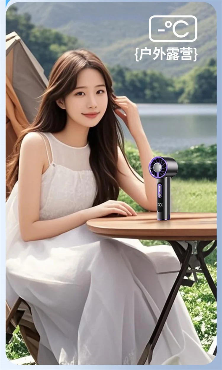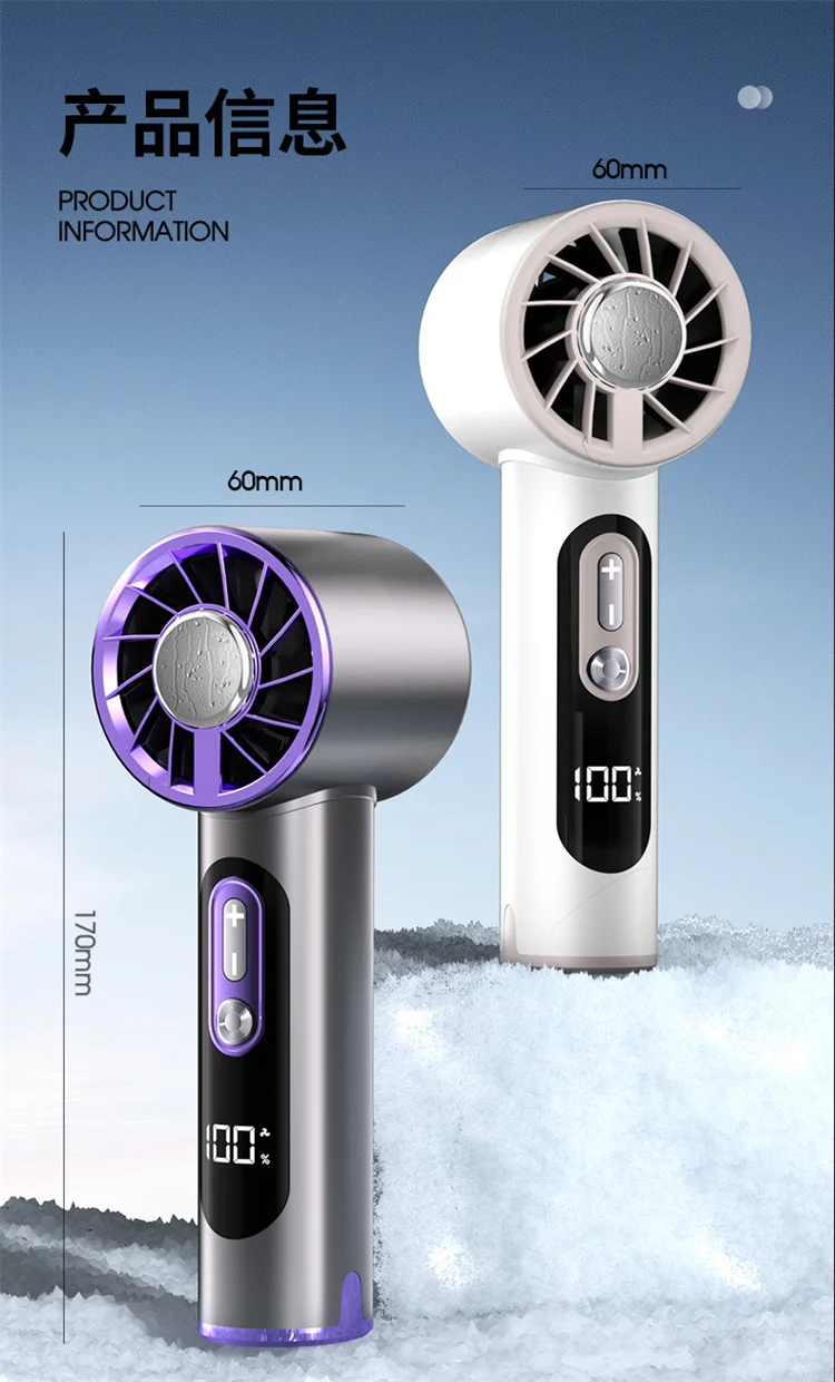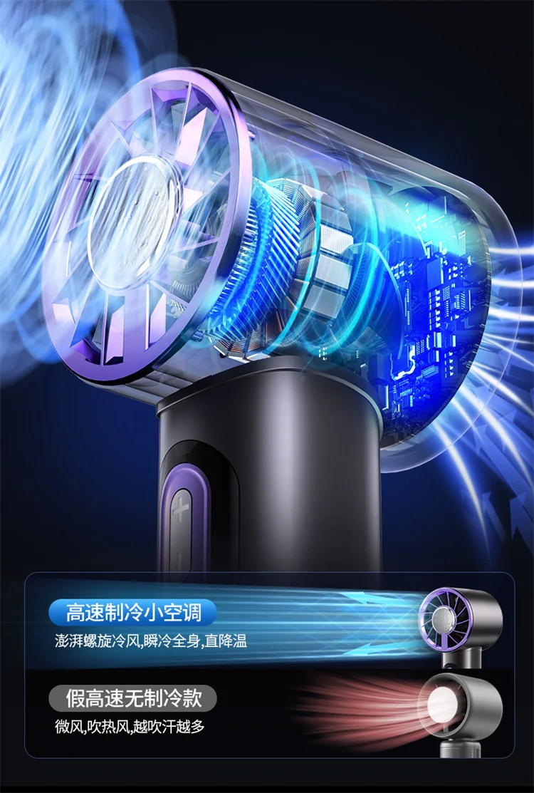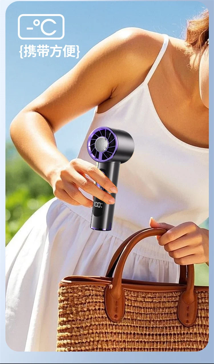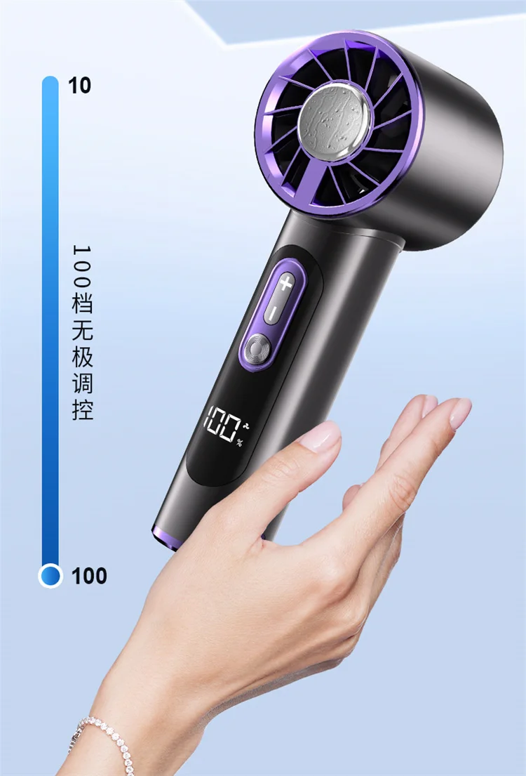 High-Speed Handheld Fan with 6000mAh Battery 100 Speed Settings Stepless Motor LED Flashlight and Battery Indicator