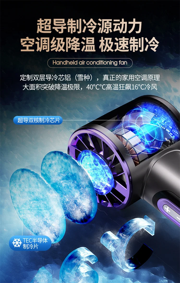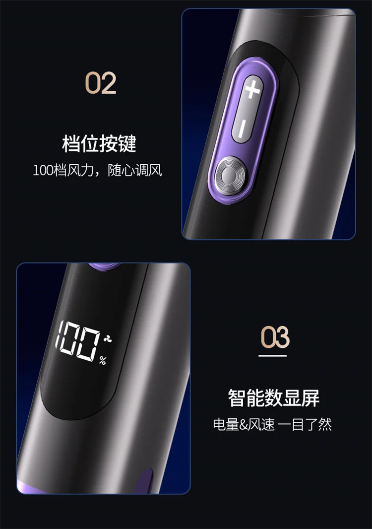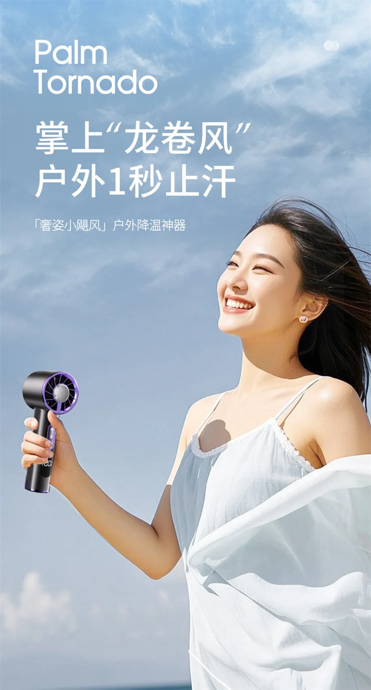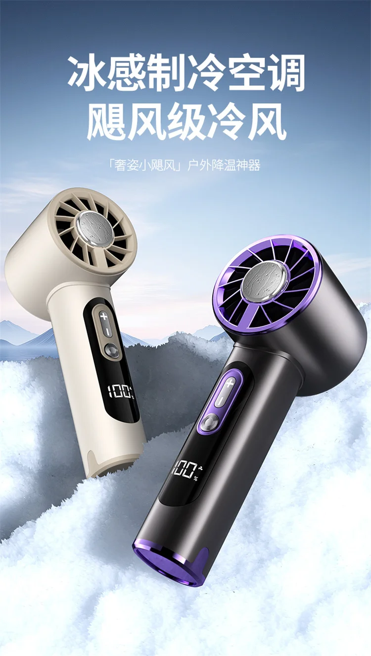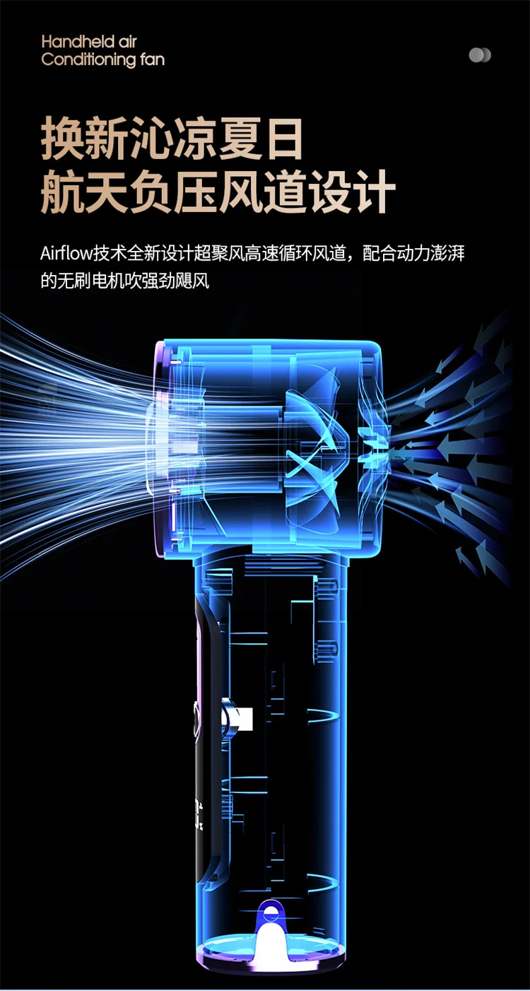 High-Speed Handheld Fan with 6000mAh Battery 100 Speed Settings Stepless Motor LED Flashlight and Battery Indicator