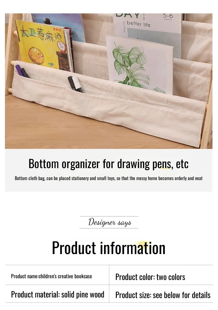 Home Multitier Solid Wood Reading Bookshelf Removable Floor Storage Bookshelf Children's Picture Book Organizer Storage Bookcase