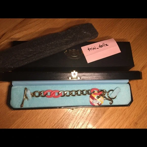 Price Firm! Juicy Couture Y2k Toggle Bracelet w/CharmVintage & saved in the box. RARE FIND Perfect Pink & Gold 💗Juicy all in crystals Juicy Crowns on toggle NWT❌NO TRADES SMOKE FREE HOME‼️FINAL SALE NO RETURNS‼️Price firm! NOT SELLING TO RESELLERS 🚨 putting 20% fees back on sellers is now affecting prices.