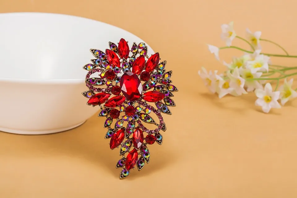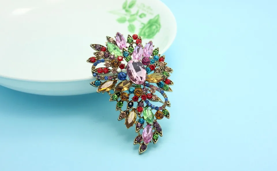 Luxurious Colorful Flower Brooch Bouquet Shiny Brand Austrian Crystal Hijab Pins And Broaches Very Nice Christmas Broches