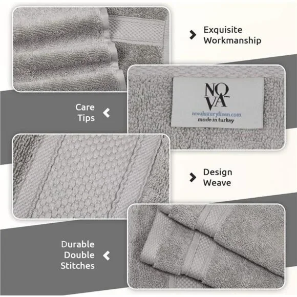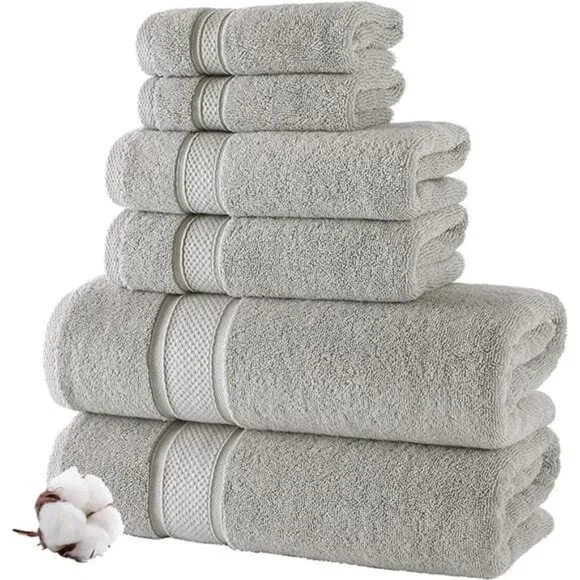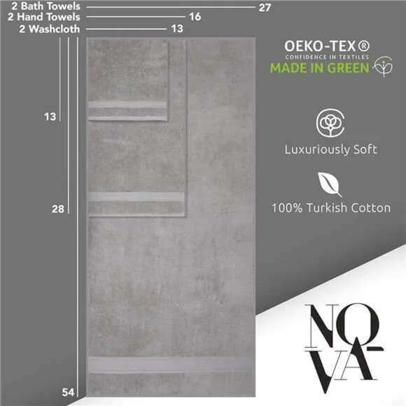 Fluffy Towels to Pamper YourselfIndulge in the unique luxury of 100% Premium Turkish towels and turn your morning shower or relaxing bath into a 5-star hotel experience.Generous SizesOur bathroom towel set includes 2 x luxury bath towels (27”x54”), 2 x hand towels (16”x28”), and 2 x washcloths (13”x13”)100% OEKO-TEX CertifiedFeel the unmatched softness of a premium Turkish towel on your skin. Every component of our towels has been tested for harmful substances.