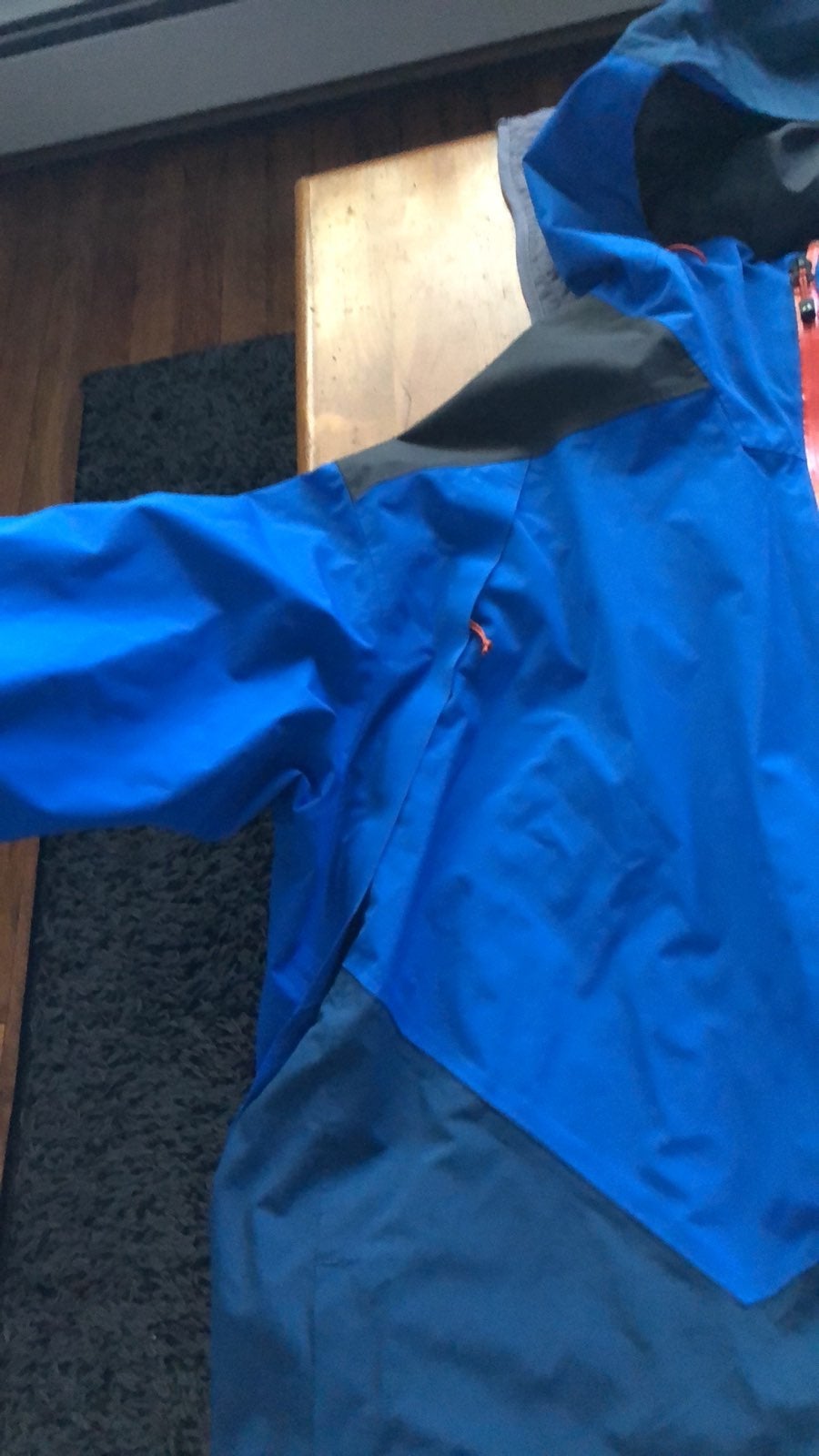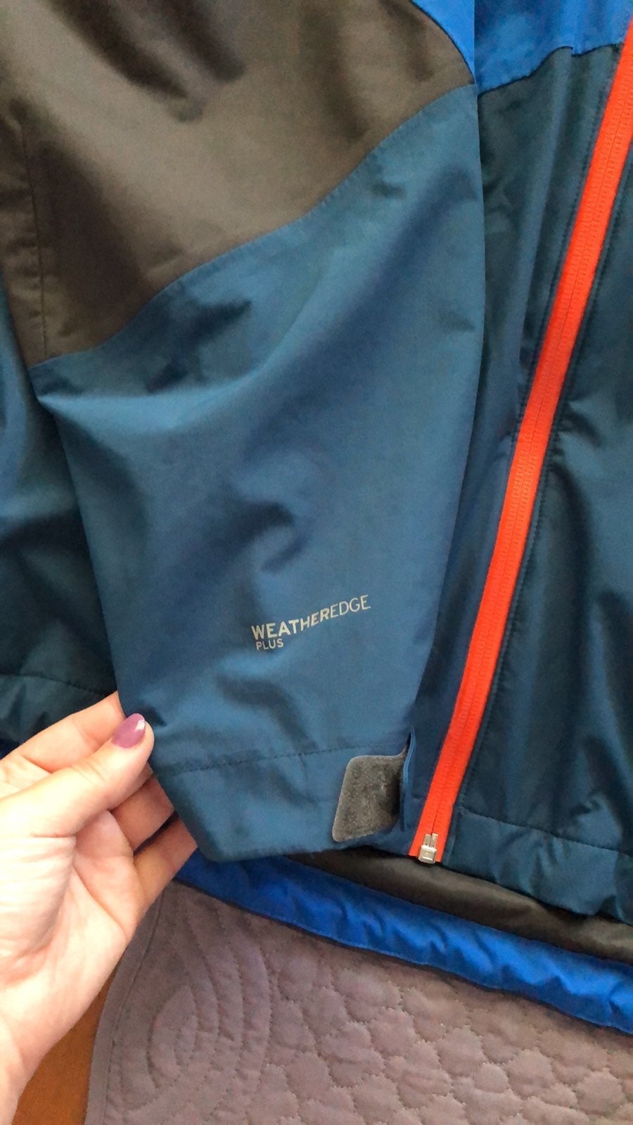 Men’s Eddie Bauer First Ascent Jacket! Only worn once, I. Perfect condition. Colors are dark grey, blue, and TEAL. The pictures don’t do the teal justice, it is much more pigmented than the pictures let on, I just couldn’t capture it on the pics. Zipper is orange. Inside has some mesh lining with a wasn’t clip and rubber lining to keep the waist tucked away from any rain, etc.