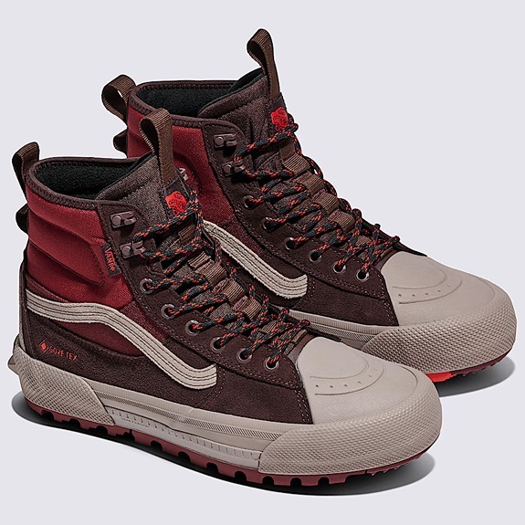 The MTE Sk8-Hi GORE-TEX is all-terrain ready and designed to offer maximum protection from the elements. Built with Vans most technically advanced and purpose-built all-weather technology‚ including GORE-TEX breathable waterproofing to keep you dry, a heat retaining Duratherm insulation package to keep you warm, and an All-Trac rubber outsole to keep you on your feet‚ this uncompromising Sk8-Hi upgrade delivers our most progressive cold weather promises so that nothing stands between you and your next adventure. It is made with leather, textile, and synthetic uppers.