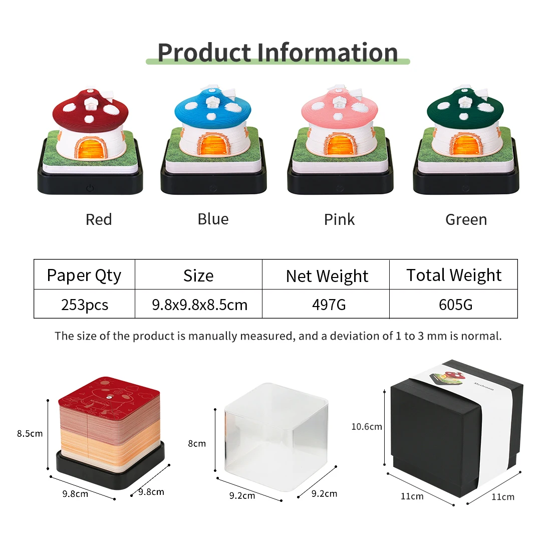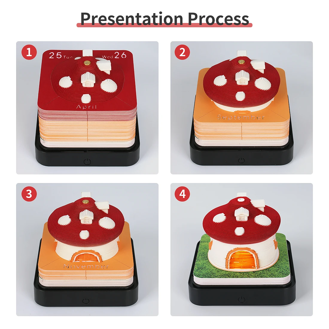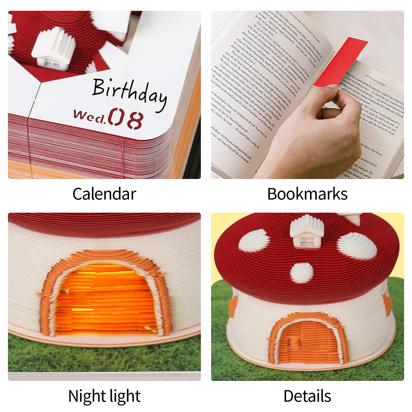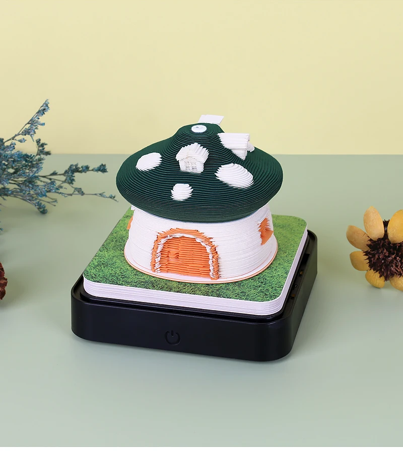 This panoramic note is available with and without lights. It has a total of 253 pages. Each page has a 2-day calendar engraved on it. It is a one-year calendar. The actual calendar will be issued in English. After the completion, a complete model is presented, with models of palaces, towers, astronauts, mushroom houses, etc. It is suitable for birthday party holiday gifts to family and friends, and can also be used as small ornaments. creative little gift