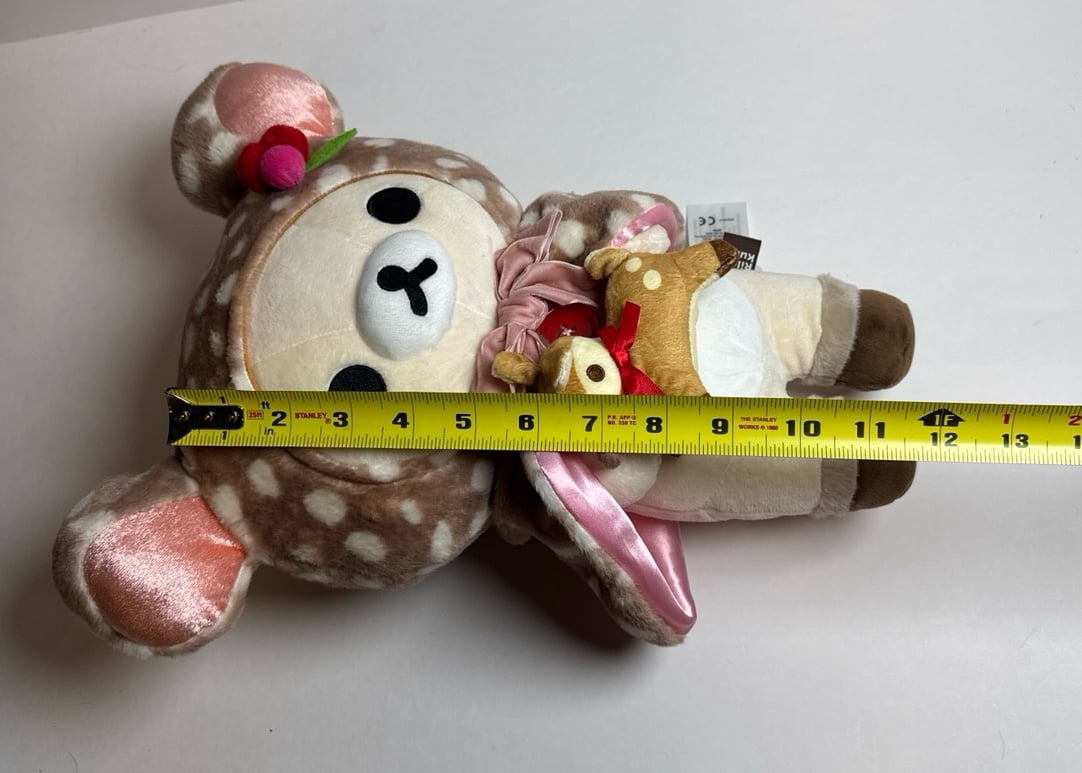 Korilakkuma is dressed up as a Fawn holding an adorable baby fawn.
