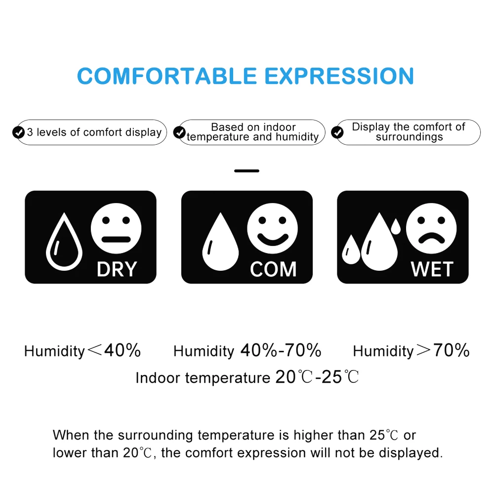 Main Functions: Alarm Clock/Snooze/Calendar/Indoor & Outdoor Temperature Humidity Test/Weather Forecast/Comfortable Expression