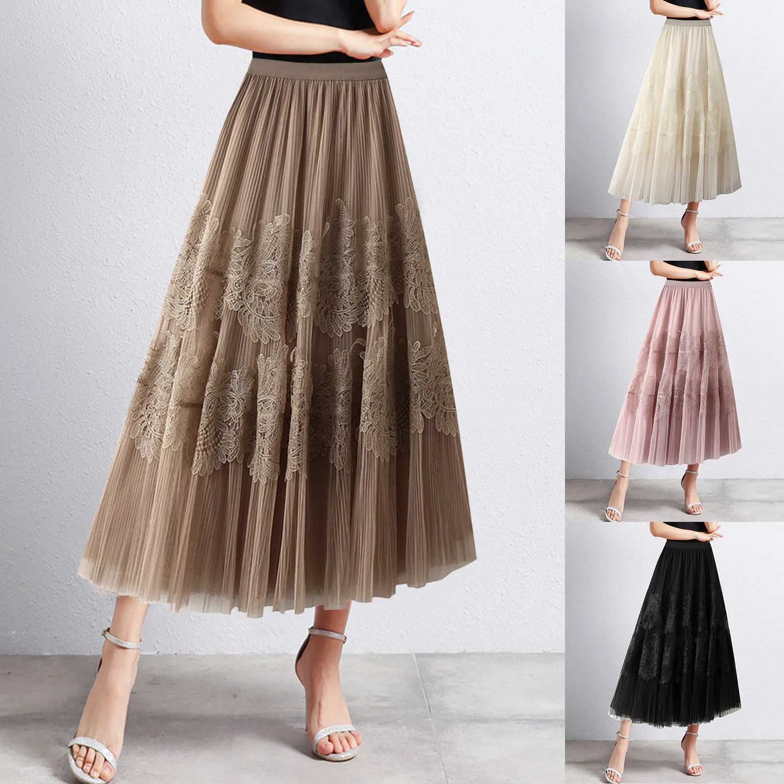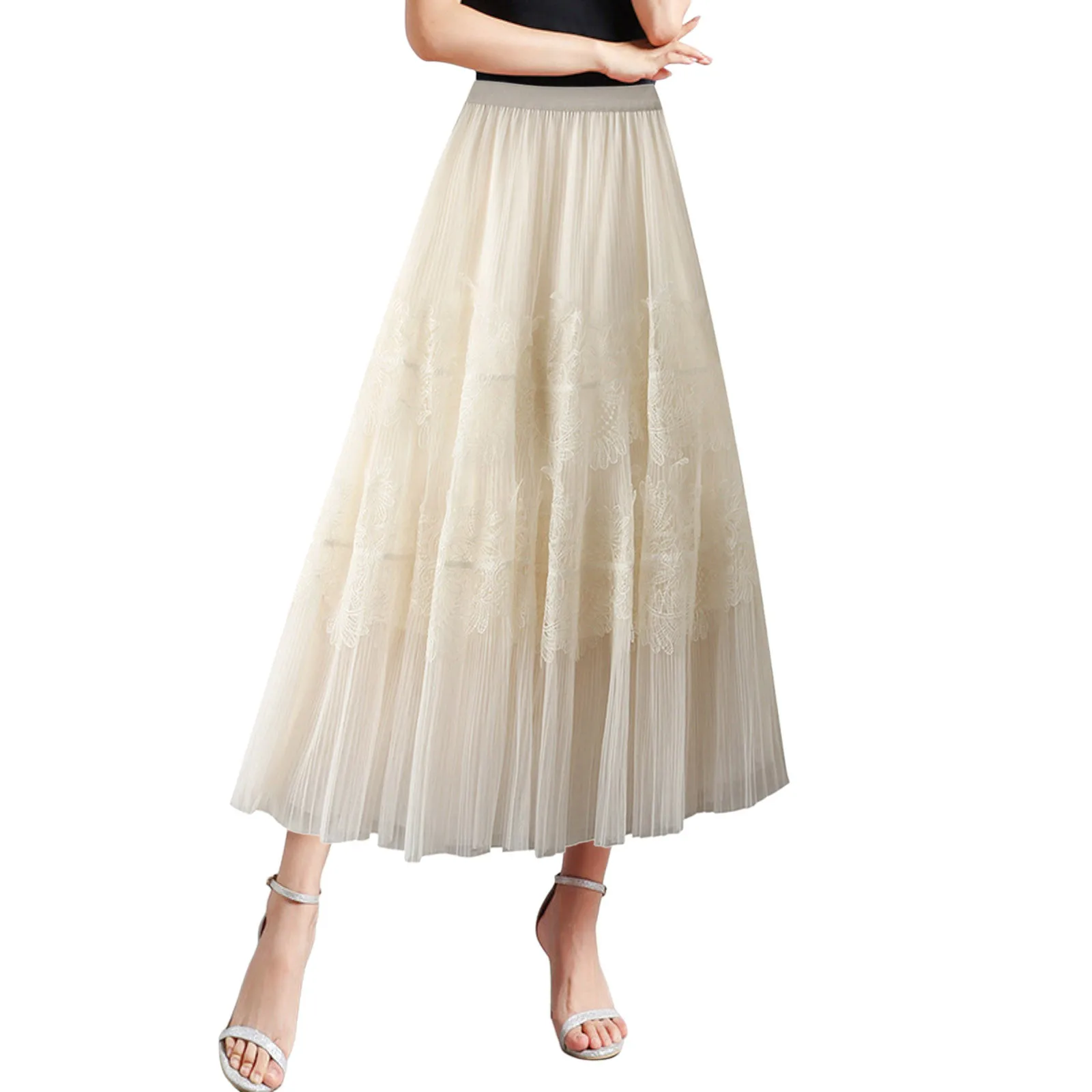 Women's skirt can be paired with crop tops, off shoulder tops, vests, t shirts, jackets, outwear, high heels, boots, sandals, etc.