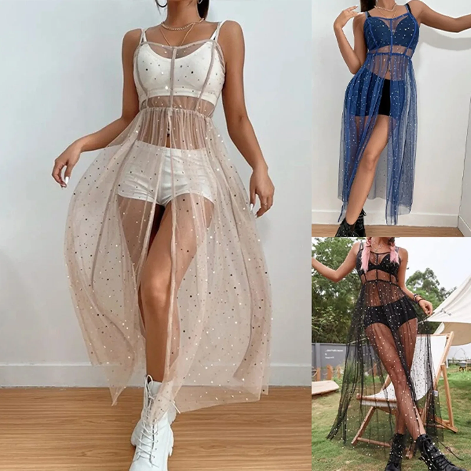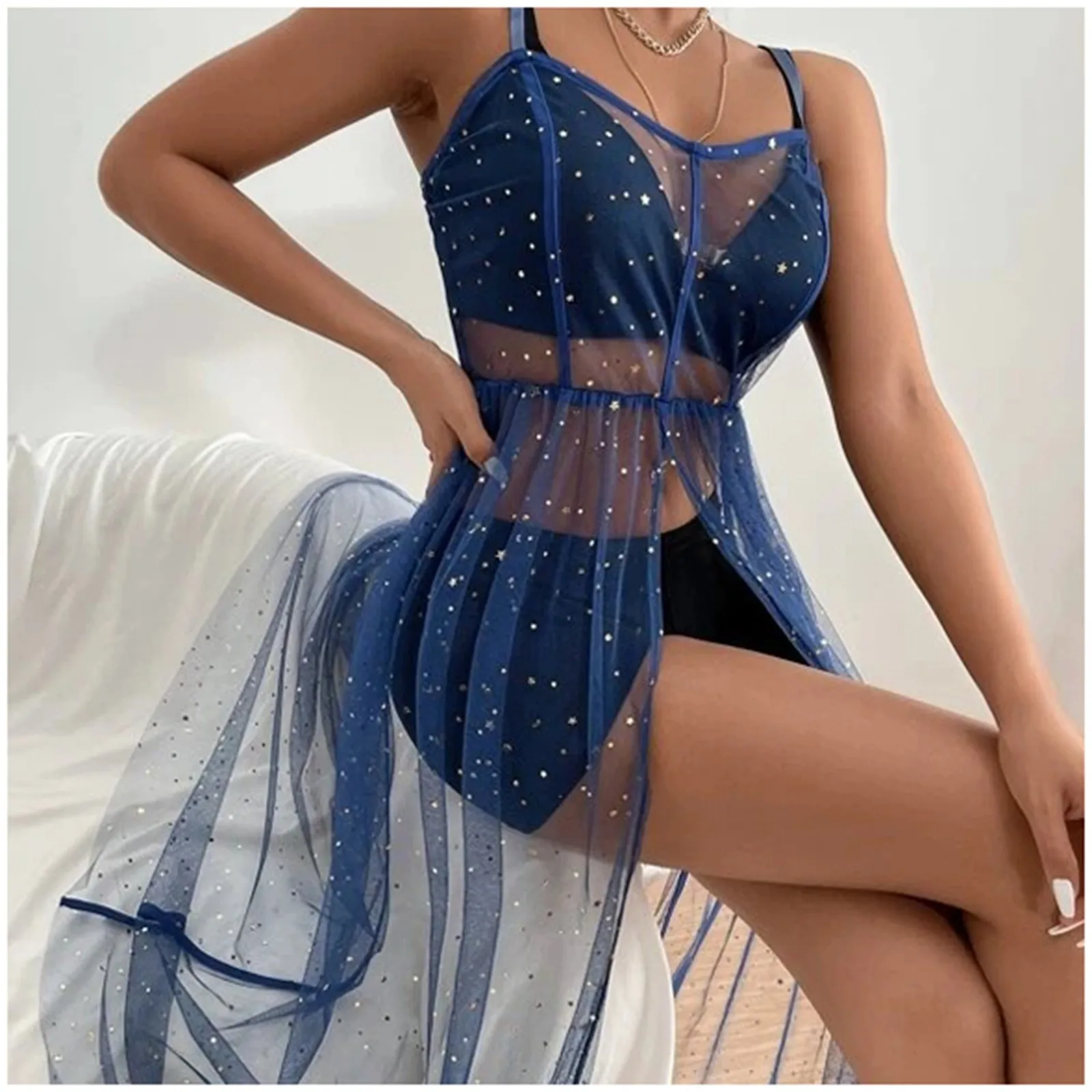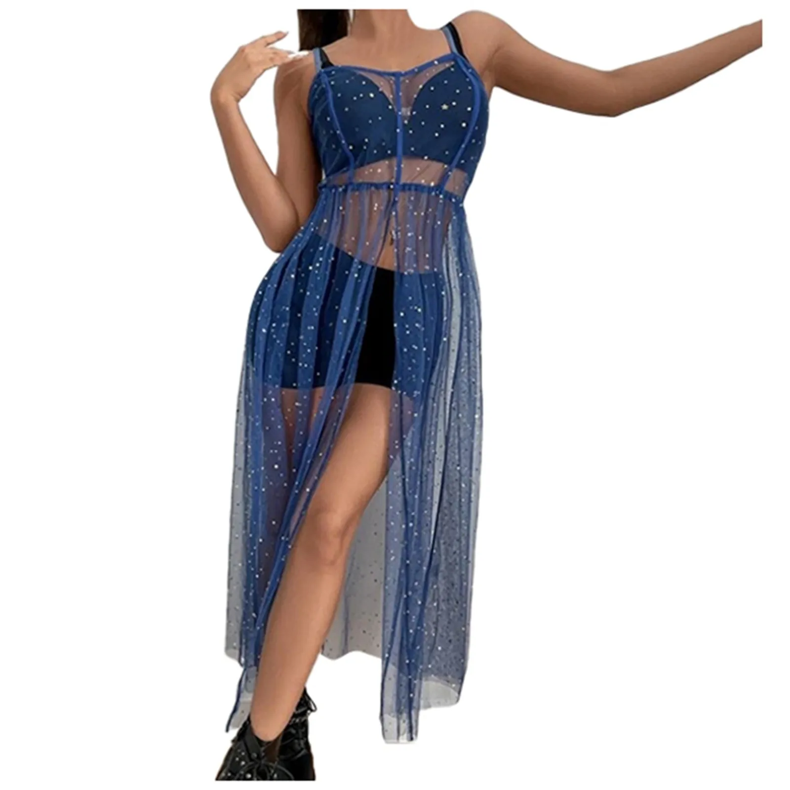 1. Starry Sheer Mesh Cover-Up Dress: A chic and beachwear option with an elegant star pattern.