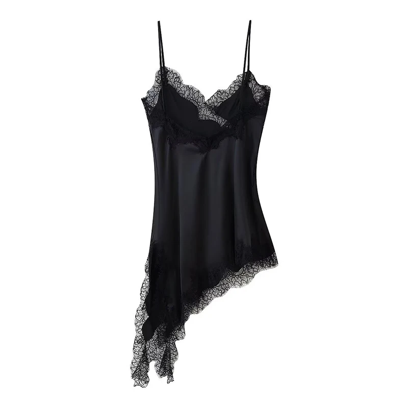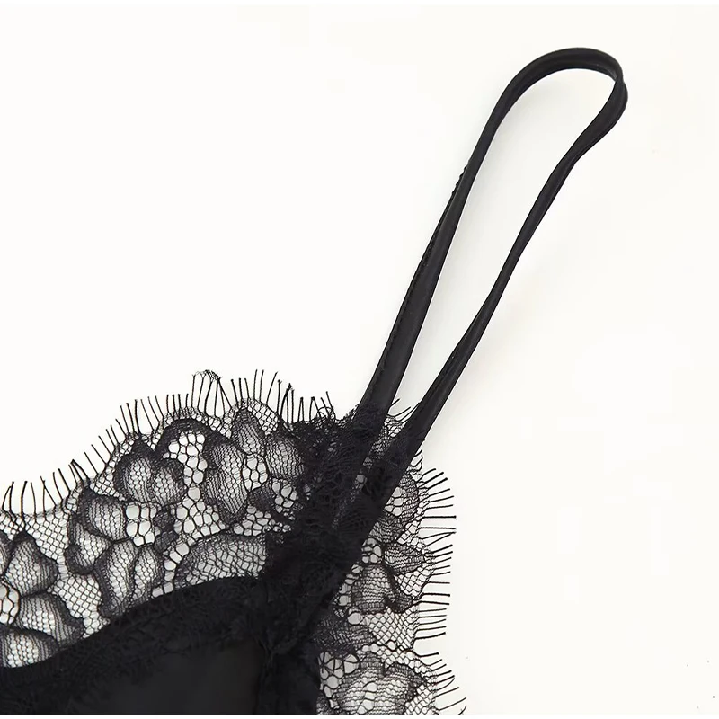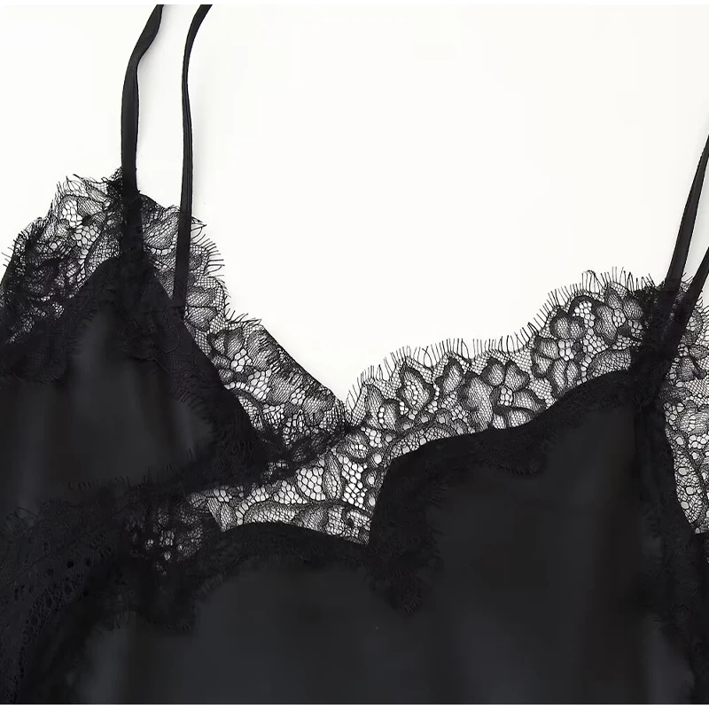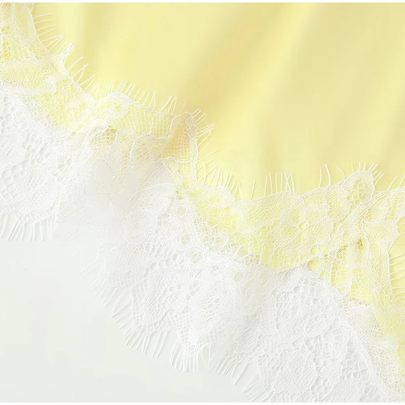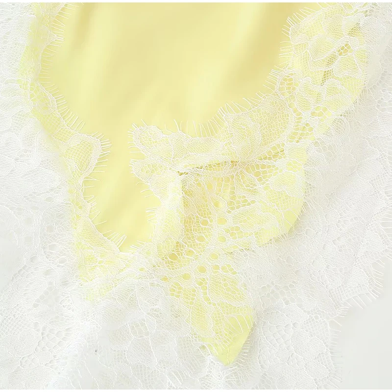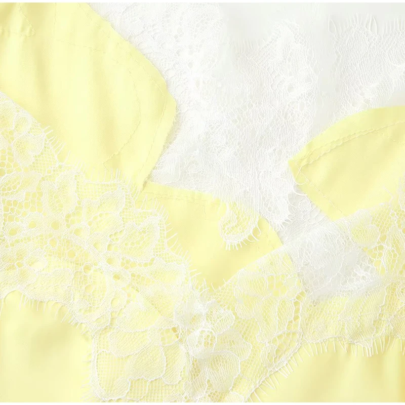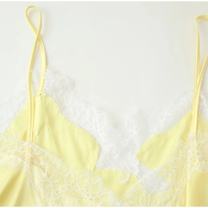 Model Number: Yellow Satin Lace Splicing Sling Dress